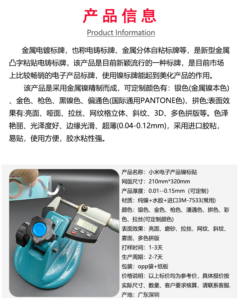 小米電鑄鎳標牌
