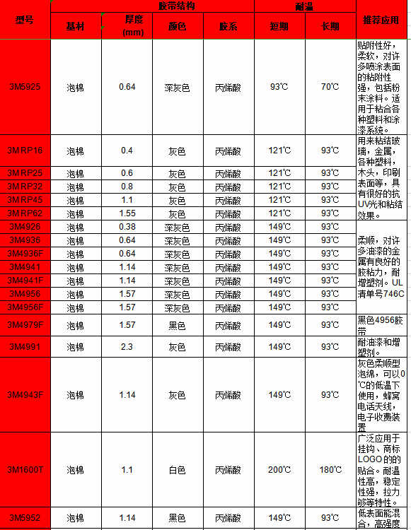 (以上3M膠帶依次為:3M4056、3M4462、3M4625、3M4913相關(guān)介紹)